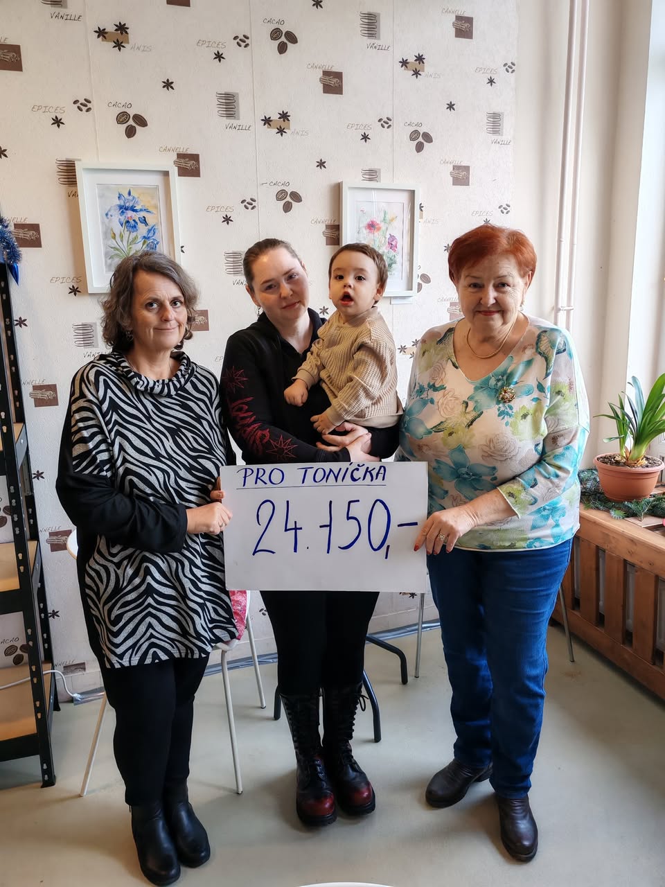 Místní skupina Českého červeného kříže Rychvald předala mamince malého Toníčka výtěžek z podzimního bazárku a vánočního prodeje pletených výrobků, který byl realizován na podporu jeho zdravotní péče a rehabilitace.